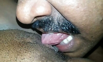 Horn-mad dark skinned Indian hubby gobbles wet labia of busty wife