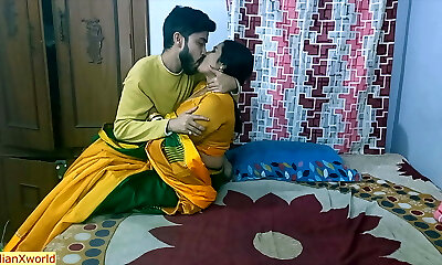 тамильская милфа мачеха застряла под кроватью в белом сари и черной блузке, когда она убирала под кроватью, а пасынок трахал ее
