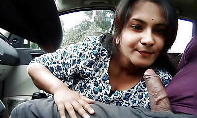 While driving she wants to play a dirty game, risky public outdoor throating and fucking Gf