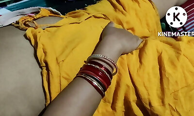 Indian Desi Bhabhi Wearing Yellow Saree In Front Of Devar