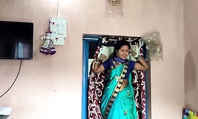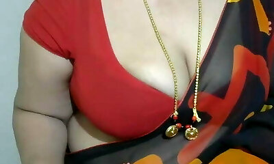 Desi bhabhi Saree blouse and hooter-sling wearing front of devar
